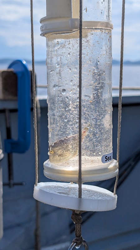 En raison des contraintes opérationnelles et légales, dix prélèvements seulement ont été réalisés … plus un poisson pêché. En effet les activités scientifiques ne sont possibles que dans les Zones Économiques Exclusives française (ZEE) ou en haute mer. Chaque fois que le Champlain se trouve dans la ZEE d’un pays qui n’a pas autorisé une activité scientifique, les prélèvements ne peuvent être effectués. C’est une contrainte connue des prélèvements d’opportunité ; pour autant ces dix échantillons de février 2026 sont précieux et viennent enrichir la collection unique du microbiome océanique du sud-ouest de l’océan indien, entretenue depuis bientôt 3 ans par les aspirants de la mission Bougainville.